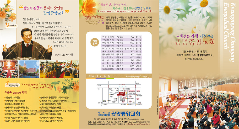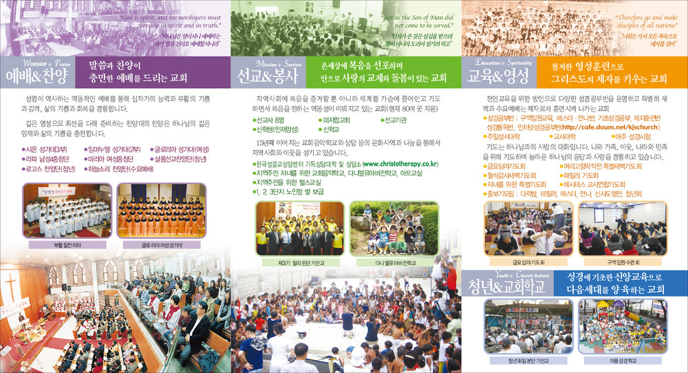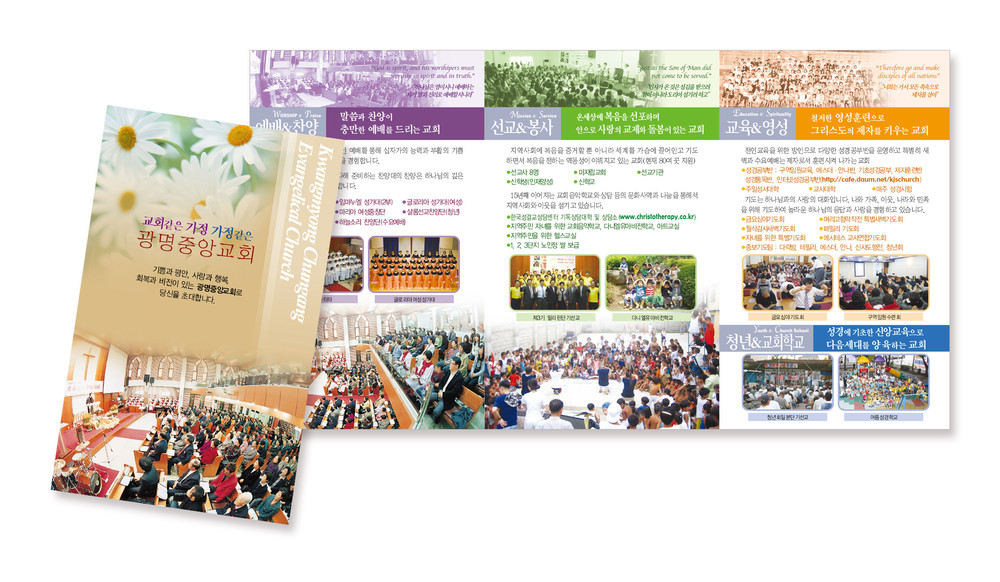 모든 교회안내 디자인은 원하시는 사이즈에 맞추어 제작이 가능합니다. (책자형, 8면, 6면, 4면 등)