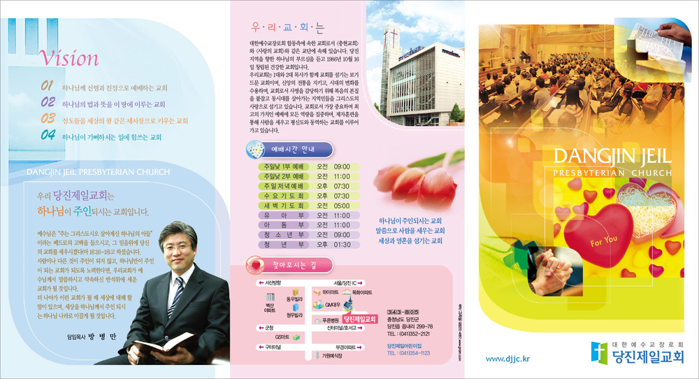 모든 교회안내 디자인은 원하시는 사이즈에 맞추어 제작이 가능합니다. (책자형, 8면, 6면, 4면 등)