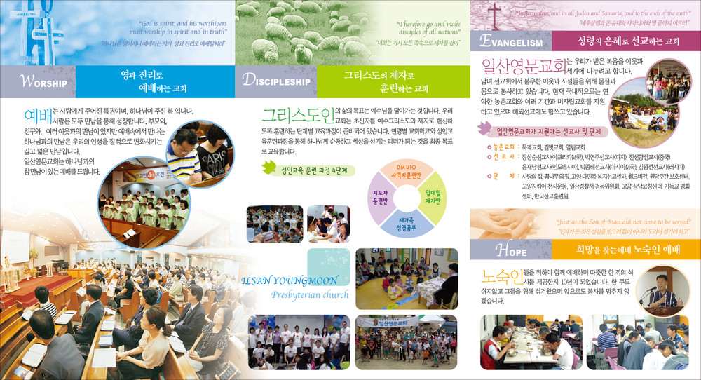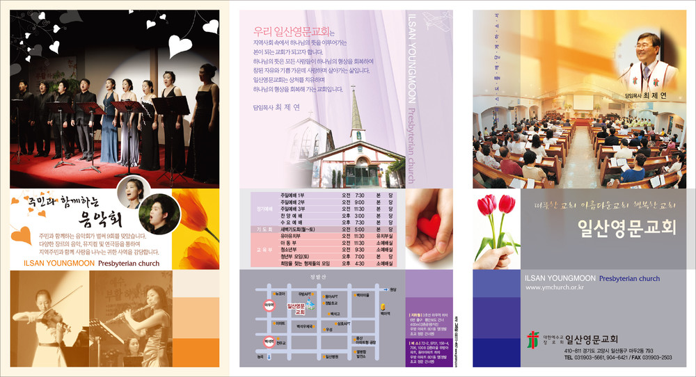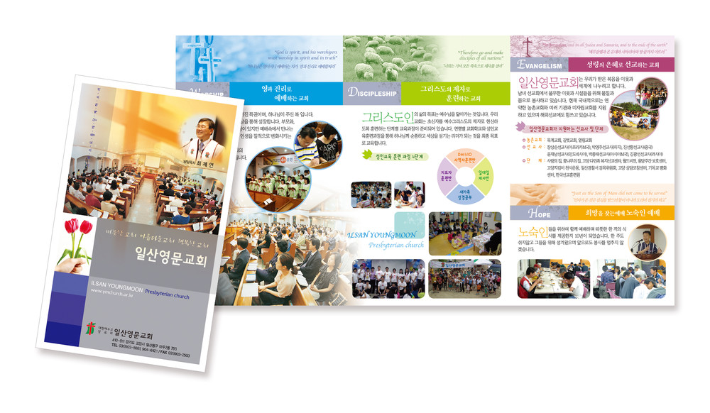 모든 교회안내 디자인은 원하시는 사이즈에 맞추어 제작이 가능합니다. (책자형, 8면, 6면, 4면 등)