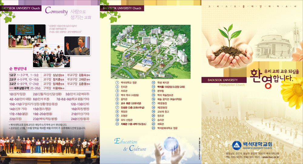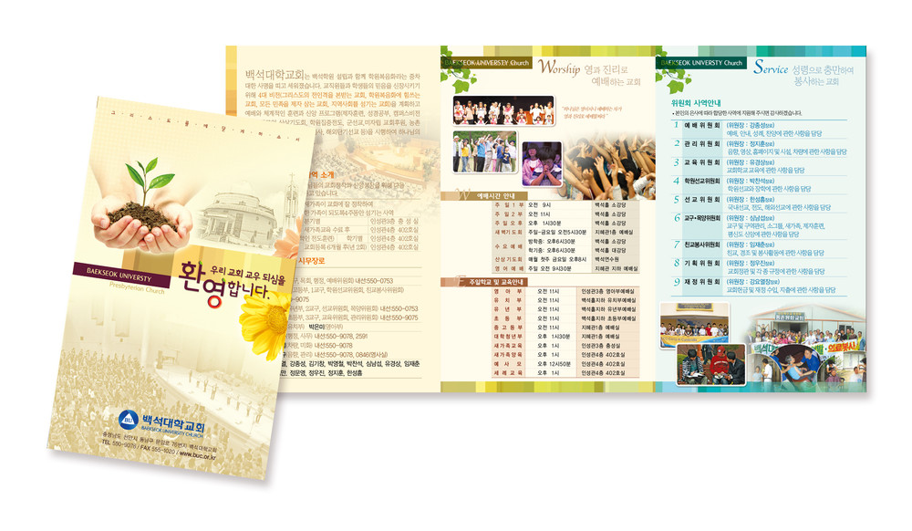 모든 교회안내 디자인은 원하시는 사이즈에 맞추어 제작이 가능합니다. (책자형, 8면, 6면, 4면 등)