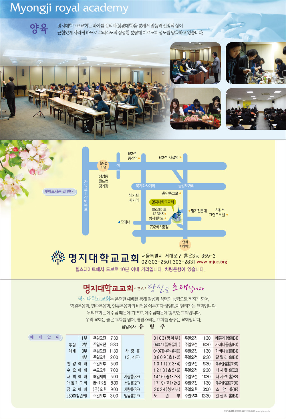 • 교회안내 제작시 예배전경, 외부전경등의 사진촬영을 무료로 해 드릴 수 있습니다.(서울, 경기지역)