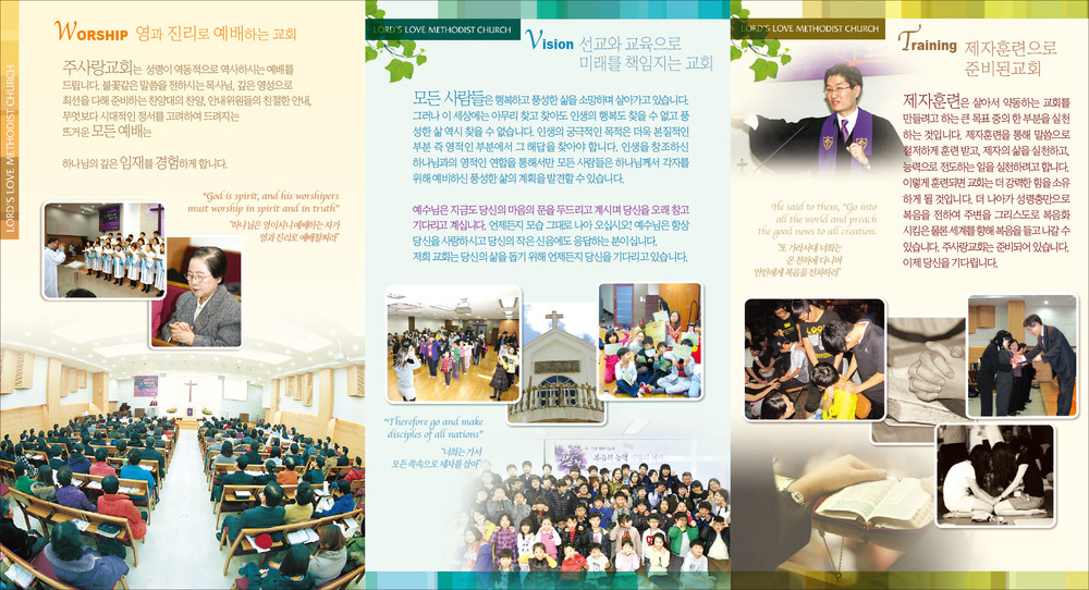 모든 교회안내 디자인은 원하시는 사이즈에 맞추어 제작이 가능합니다. (책자형, 8면, 6면, 4면 등)