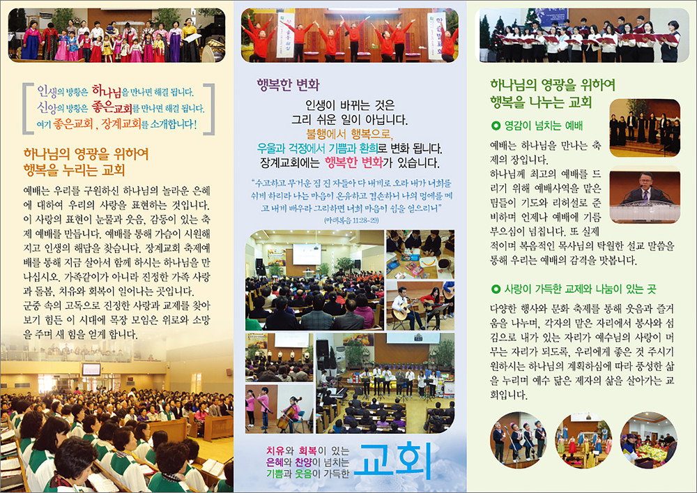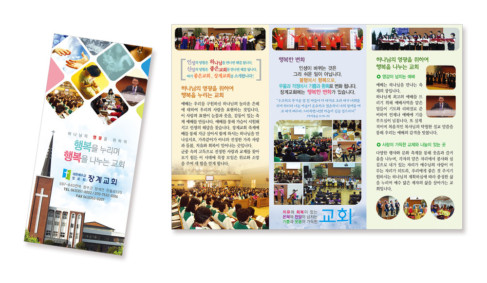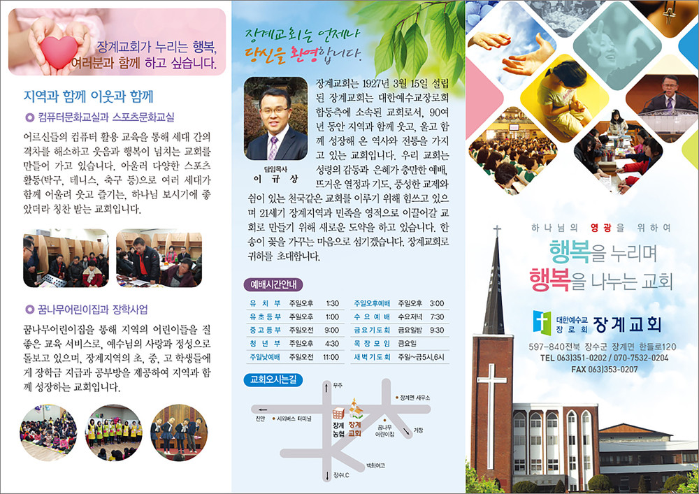 모든 교회안내 디자인은 원하시는 사이즈에 맞추어 제작이 가능합니다. (책자형, 8면, 6면, 4면 등)