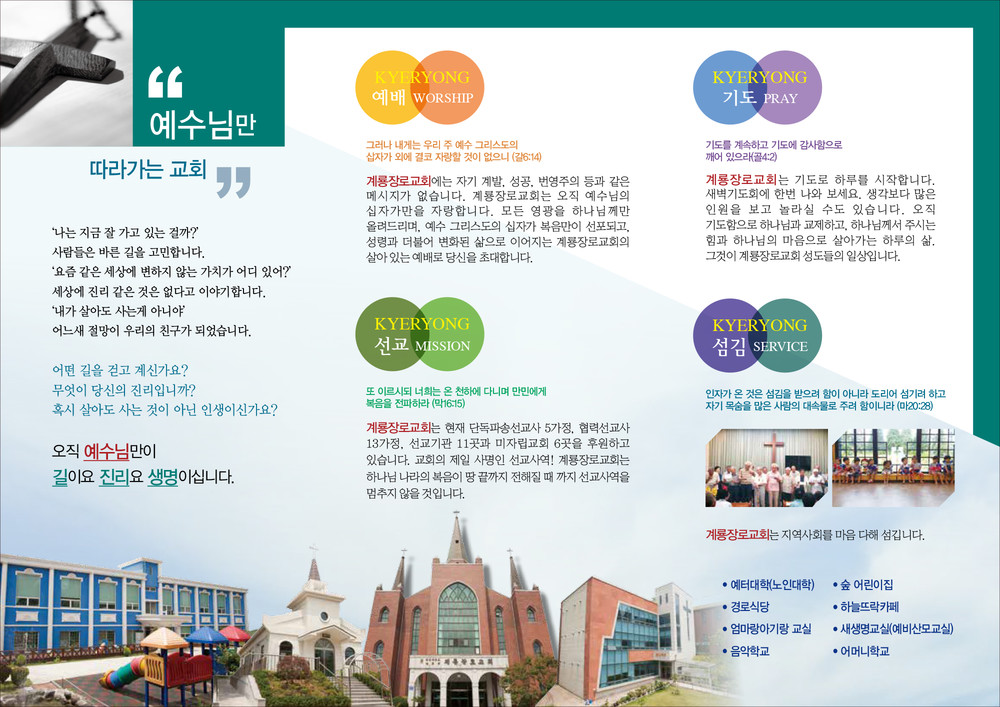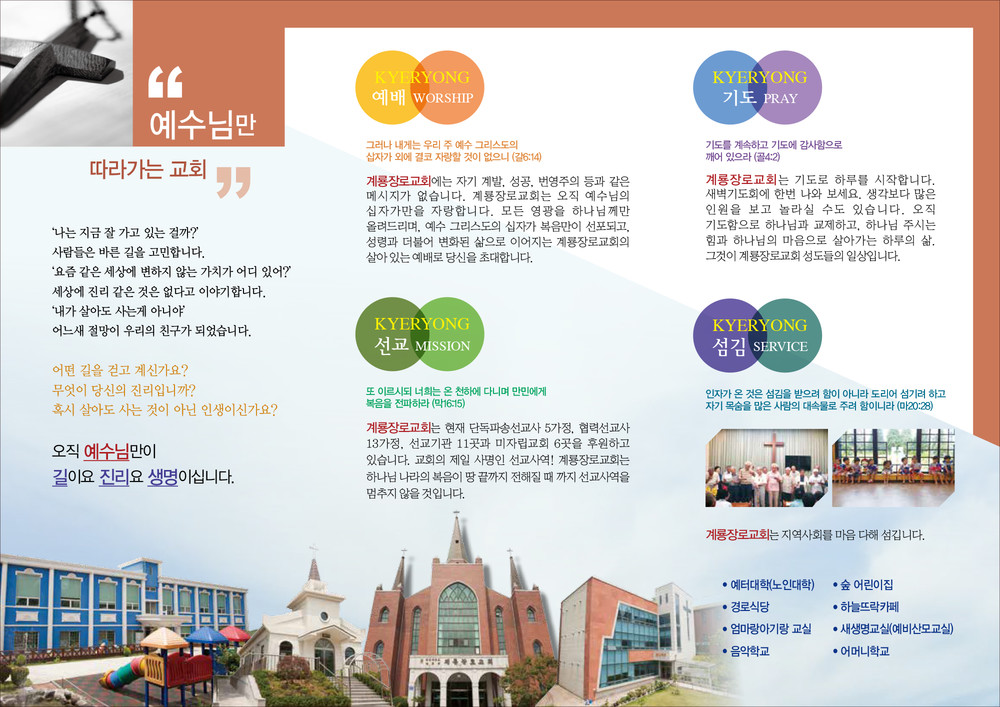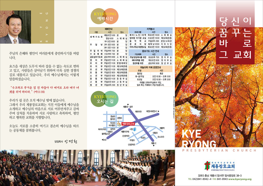 모든 교회안내 디자인은 원하시는 사이즈에 맞추어 제작이 가능합니다. (책자형, 8면, 6면, 4면 등)