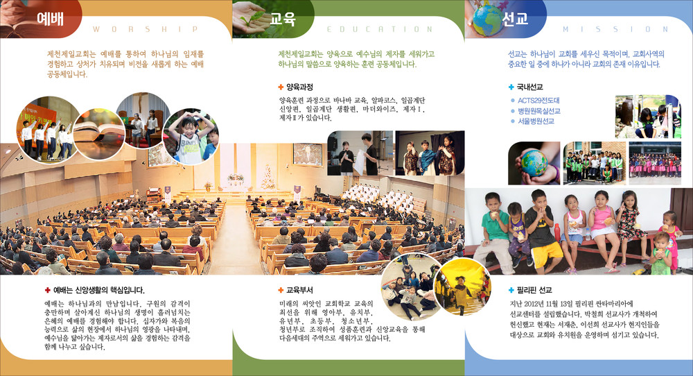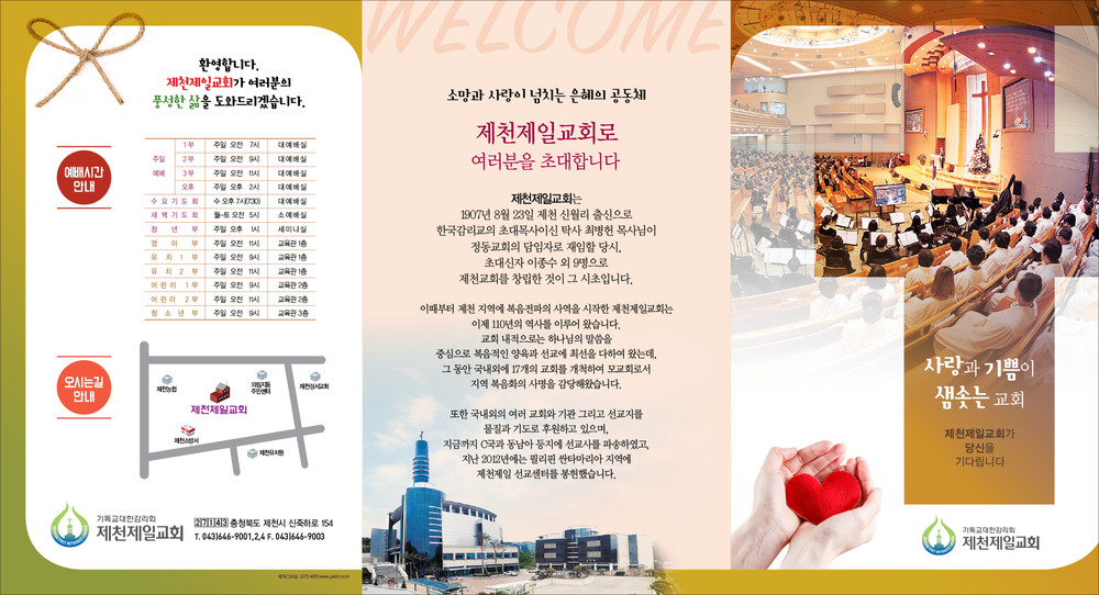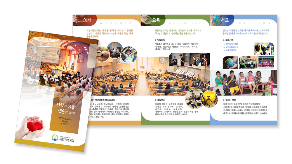 모든 교회안내 디자인은 원하시는 사이즈에 맞추어 제작이 가능합니다. (책자형, 8면, 6면, 4면 등)