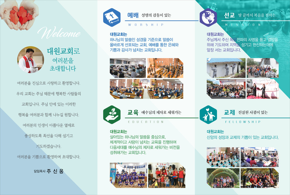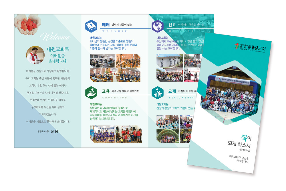 모든 교회안내 디자인은 원하시는 사이즈에 맞추어 제작이 가능합니다. (책자형, 8면, 6면, 4면 등)