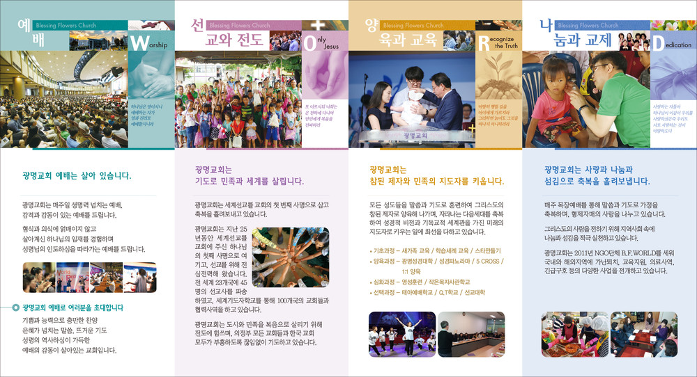 모든 교회안내 디자인은 원하시는 사이즈에 맞추어 제작이 가능합니다. (책자형, 8면, 6면, 4면 등)