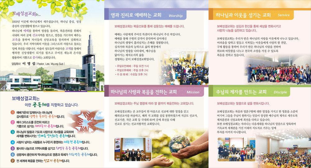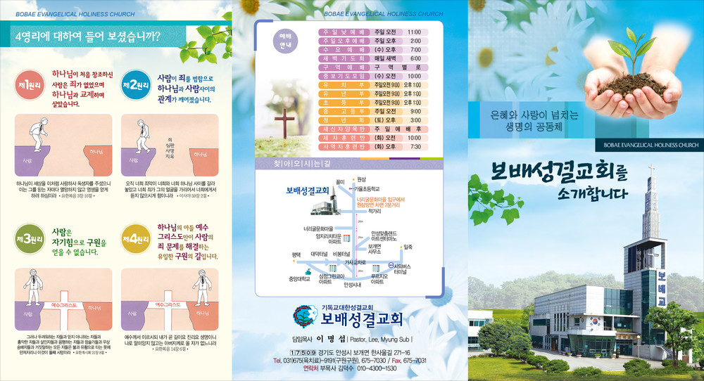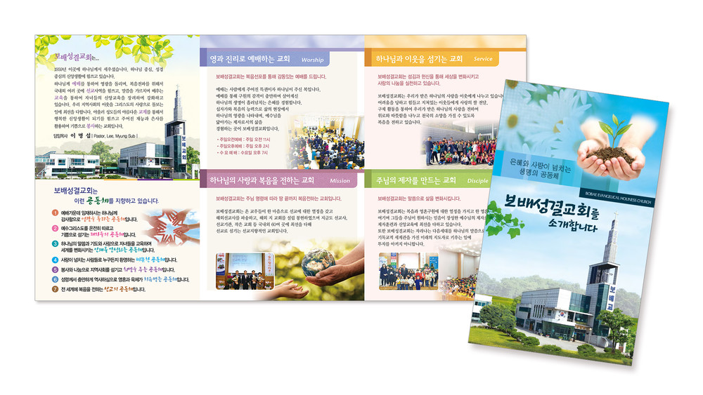 모든 교회안내 디자인은 원하시는 사이즈에 맞추어 제작이 가능합니다. (책자형, 8면, 6면, 4면 등)