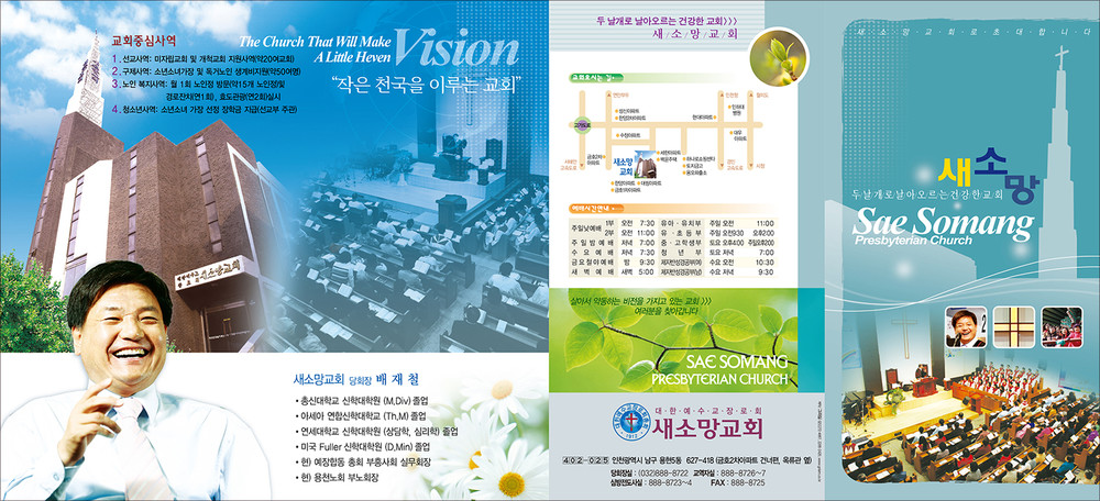 모든 교회안내 디자인은 원하시는 사이즈에 맞추어 제작이 가능합니다. (책자형, 8면, 6면, 4면 등)