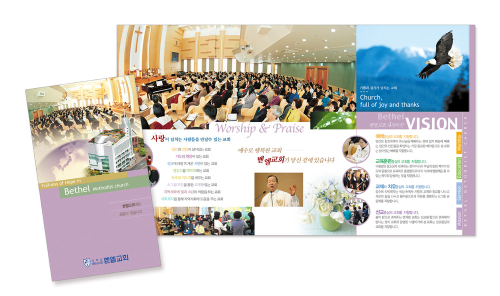 모든 교회안내 디자인은 원하시는 사이즈에 맞추어 제작이 가능합니다. (책자형, 8면, 6면, 4면 등)