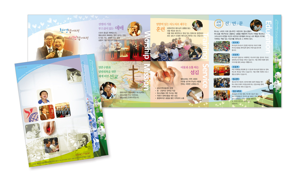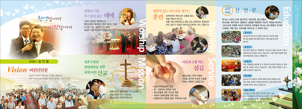 모든 교회안내 디자인은 원하시는 사이즈에 맞추어 제작이 가능합니다. (책자형, 8면, 6면, 4면 등)