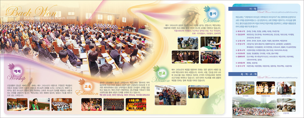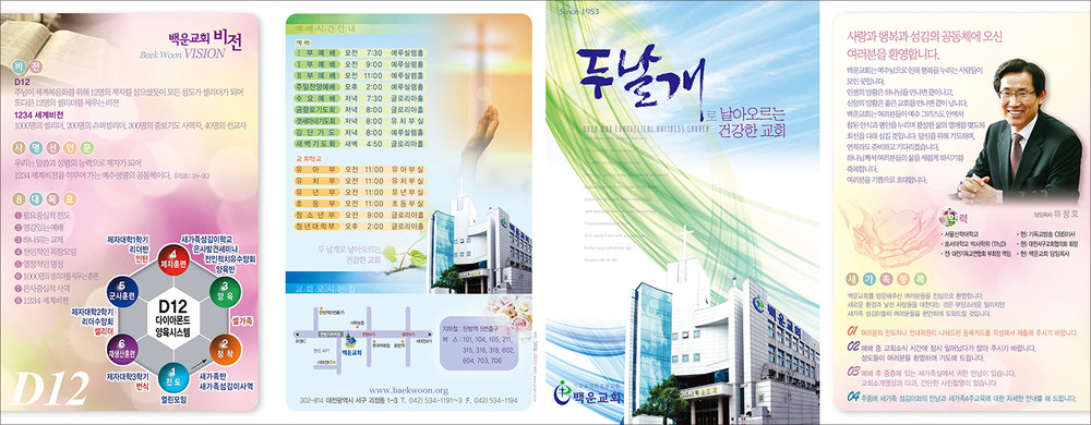 모든 교회안내 디자인은 원하시는 사이즈에 맞추어 제작이 가능합니다. (책자형, 8면, 6면, 4면 등)