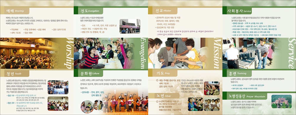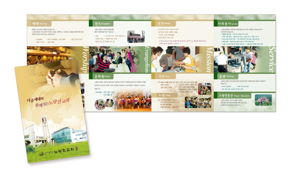 모든 교회안내 디자인은 원하시는 사이즈에 맞추어 제작이 가능합니다. (책자형, 8면, 6면, 4면 등)
