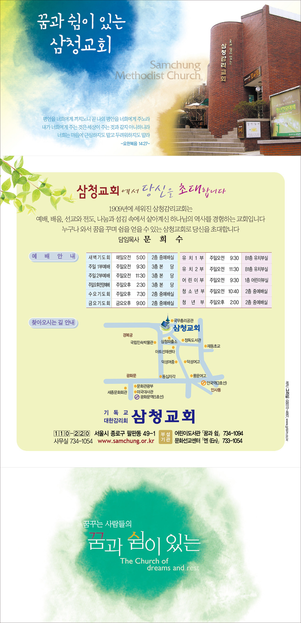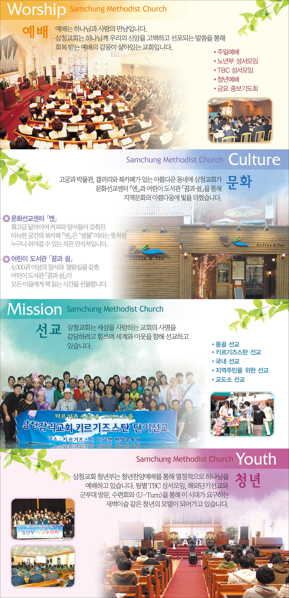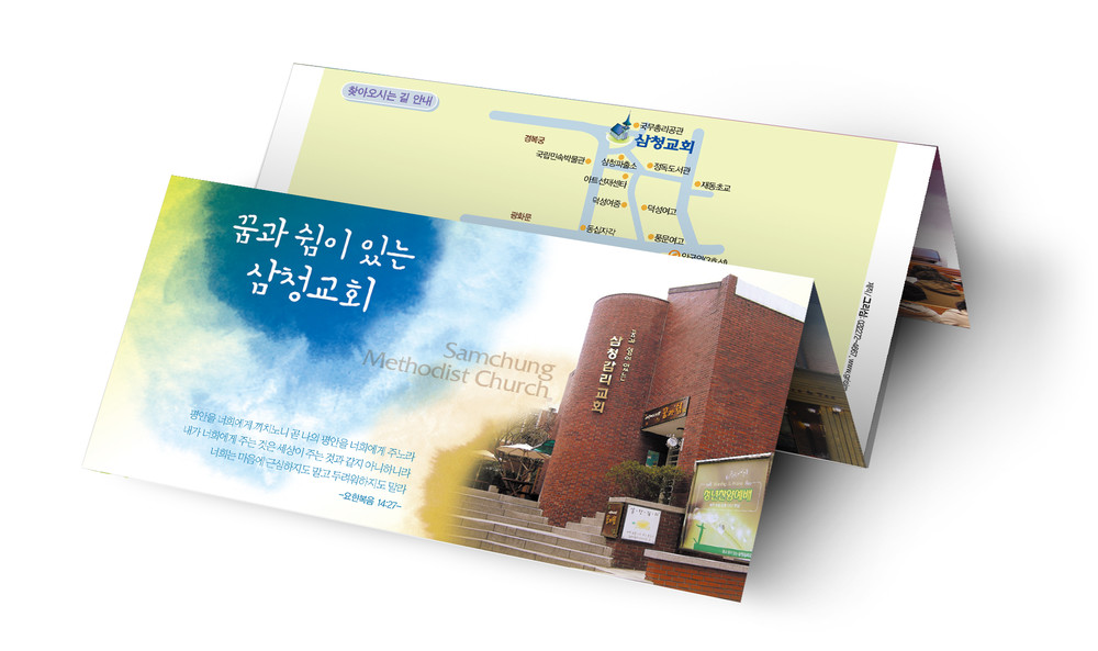 모든 교회안내 디자인은 원하시는 사이즈에 맞추어 제작이 가능합니다. (책자형, 8면, 6면, 4면 등)