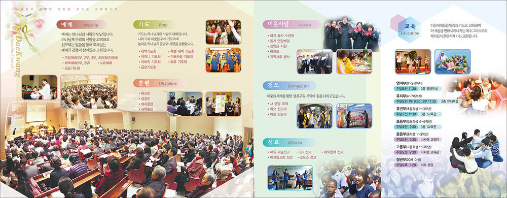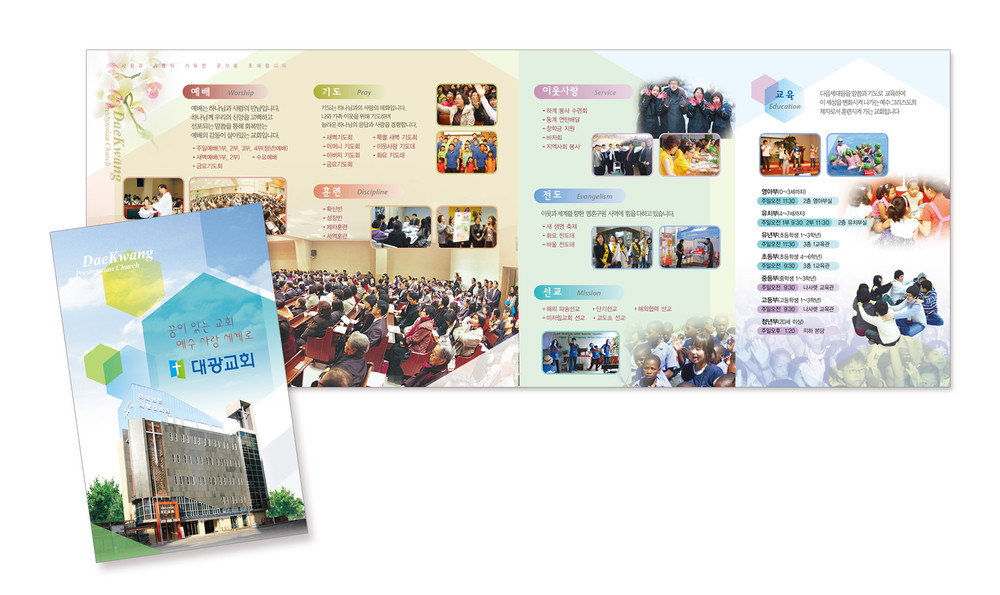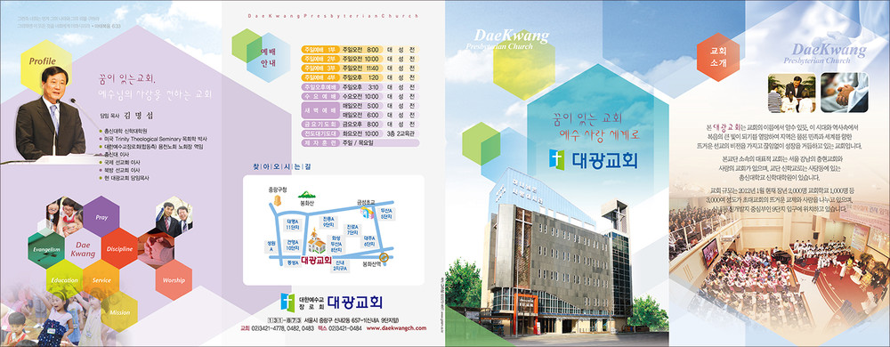 모든 교회안내 디자인은 원하시는 사이즈에 맞추어 제작이 가능합니다. (책자형, 8면, 6면, 4면 등)
