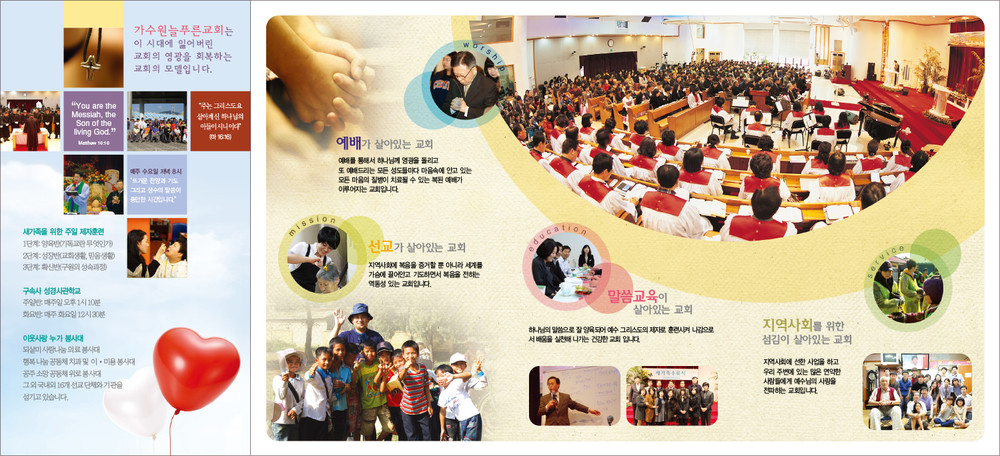 모든 교회안내 디자인은 원하시는 사이즈에 맞추어 제작이 가능합니다. (책자형, 8면, 6면, 4면 등)