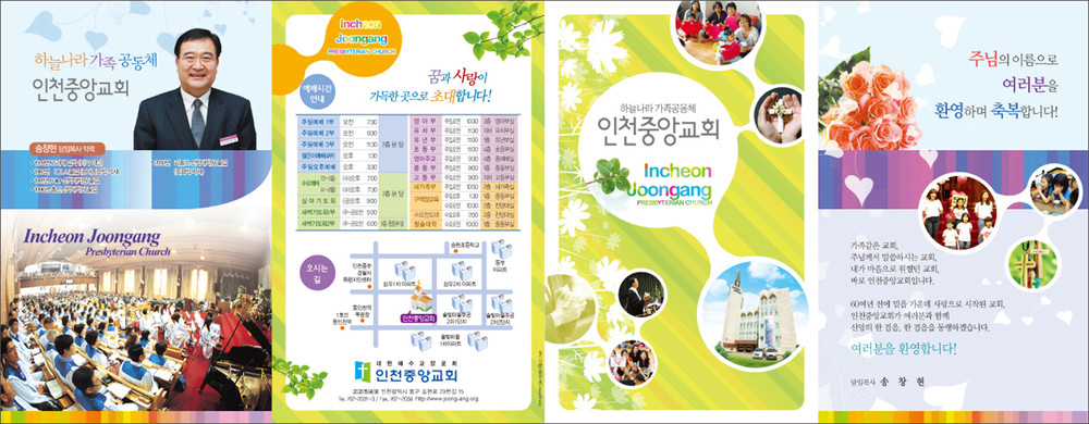 모든 교회안내 디자인은 원하시는 사이즈에 맞추어 제작이 가능합니다. (책자형, 8면, 6면, 4면 등)
