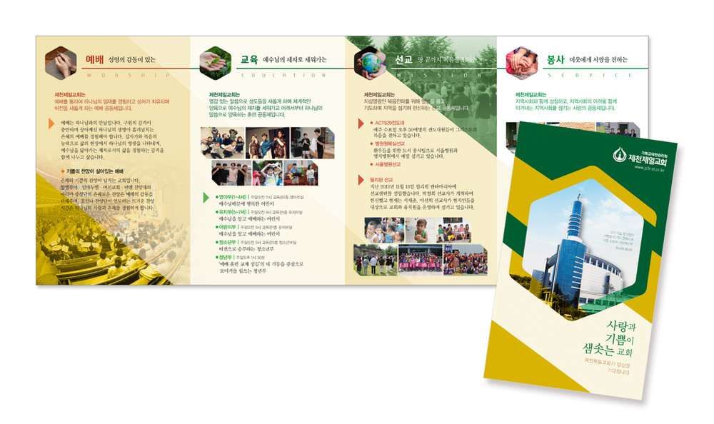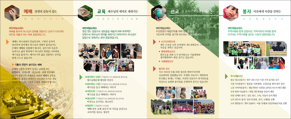 모든 교회안내 디자인은 원하시는 사이즈에 맞추어 제작이 가능합니다. (책자형, 8면, 6면, 4면 등)