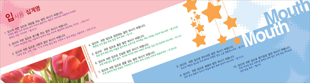 보통 교정을 컴퓨터 모니터나, 칼라 프린터로 출력해서 보시는 경우 모니터(빛의 색 RGB)와 인쇄물(잉크색 CMYK)에는 약간의 차이가 있습니다. 각 교회에서 사용되는 칼라 프린트도 옵셋 인쇄와는 인쇄 방식이 조금 달라 색상의 차이가 있습니다. 특히 종이의 재질(모조지, 아트지, 고급용지)에 의한 색의 차이도 발생할 수 있습니다.