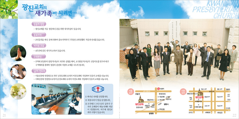 모든 교회안내 디자인은 원하시는 사이즈에 맞추어 제작이 가능합니다. (책자형, 8면, 6면, 4면 등)