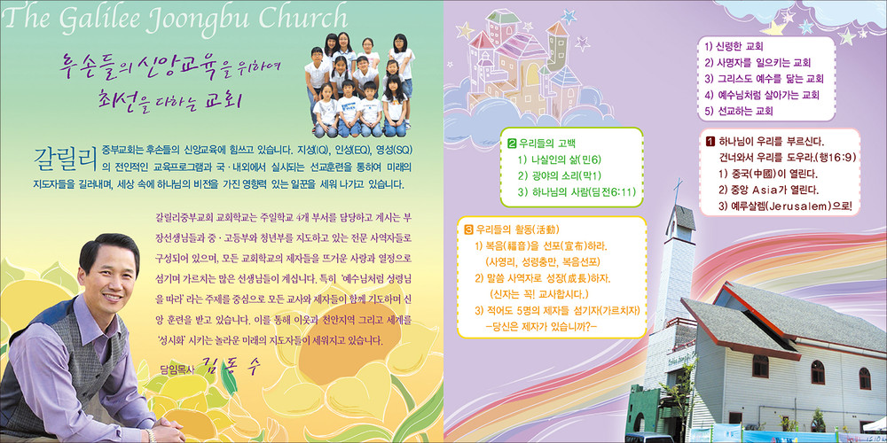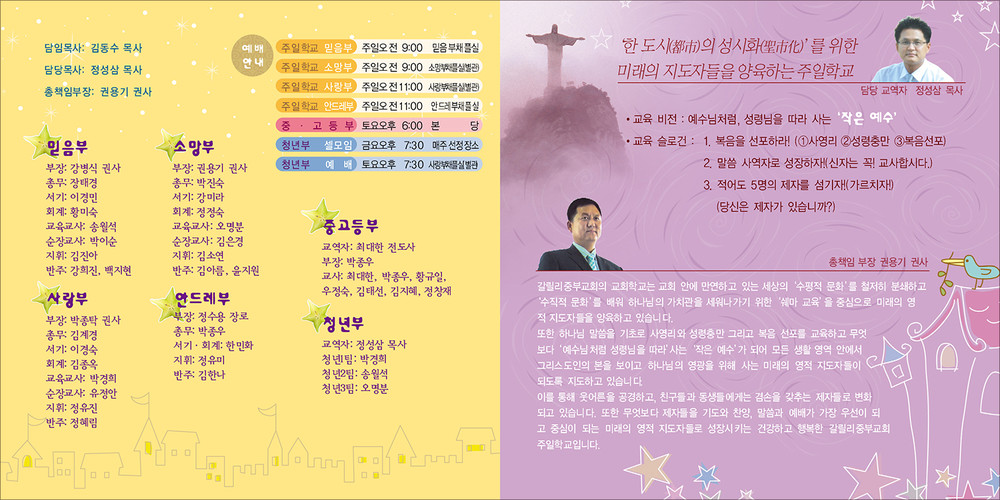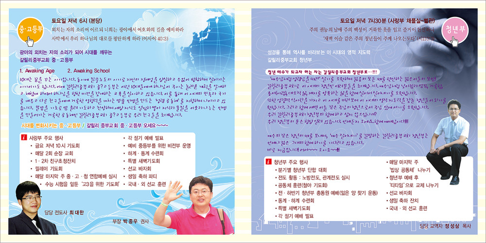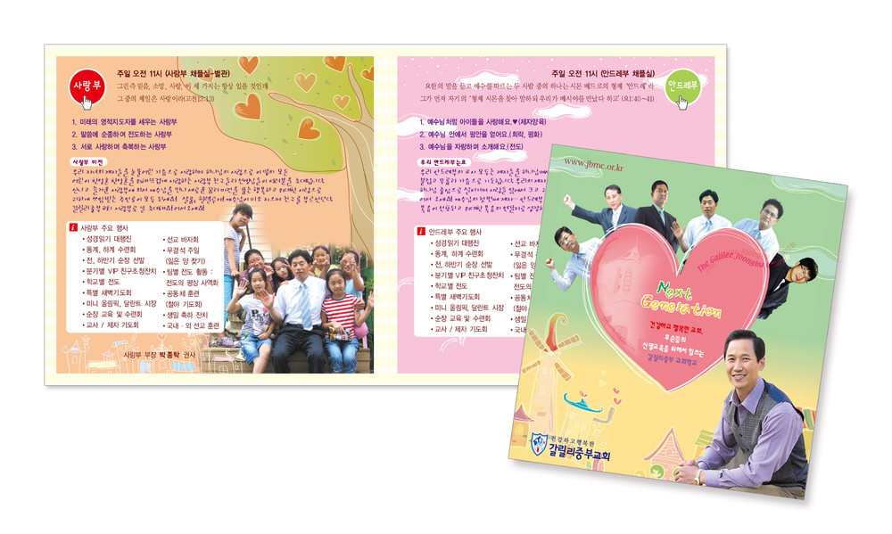 모든 교회안내 디자인은 원하시는 사이즈에 맞추어 제작이 가능합니다. (책자형, 8면, 6면, 4면 등)