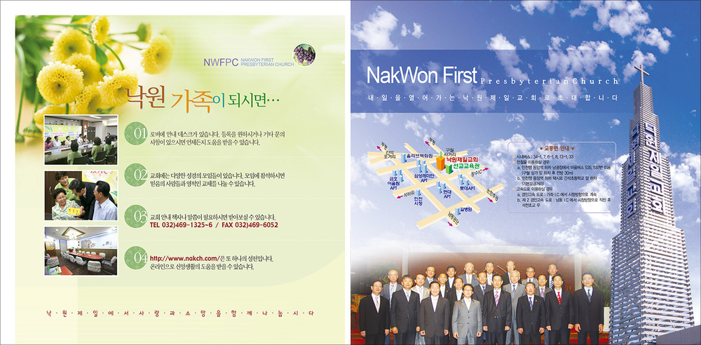 모든 교회안내 디자인은 원하시는 사이즈에 맞추어 제작이 가능합니다. (책자형, 8면, 6면, 4면 등)