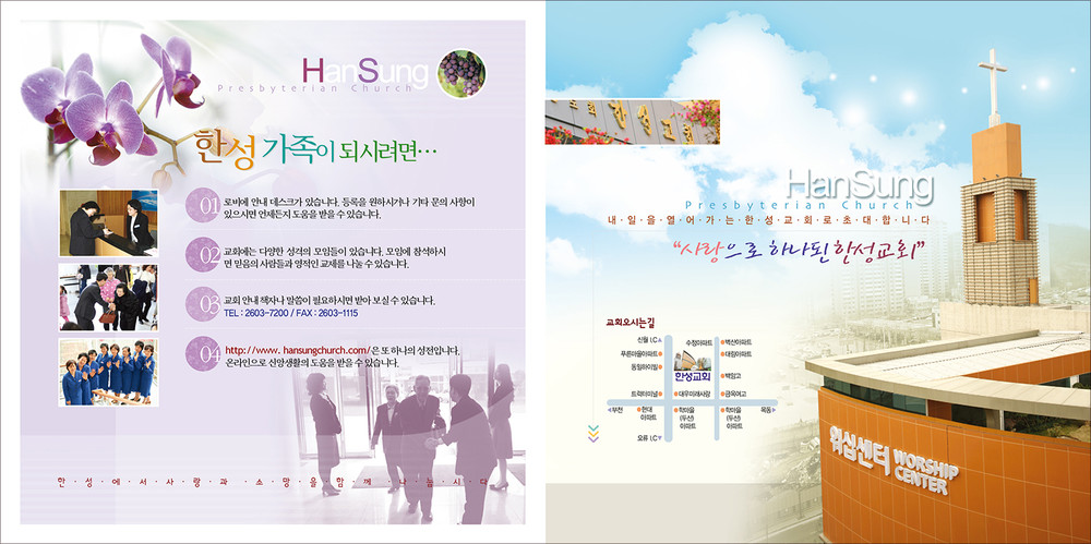 모든 교회안내 디자인은 원하시는 사이즈에 맞추어 제작이 가능합니다. (책자형, 8면, 6면, 4면 등)