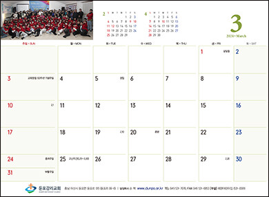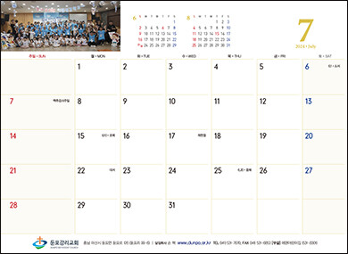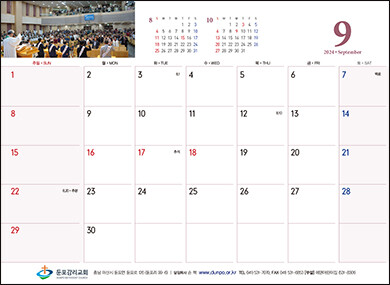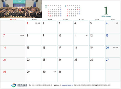 • 본 캘린더에는 기념일, 음력, 절기, 교회력이 표기되어 있습니다.