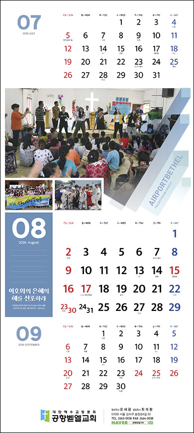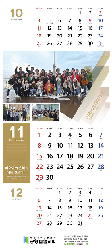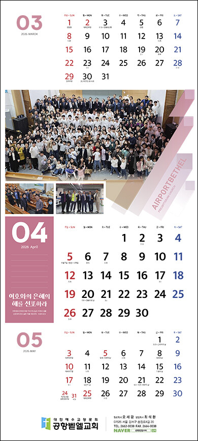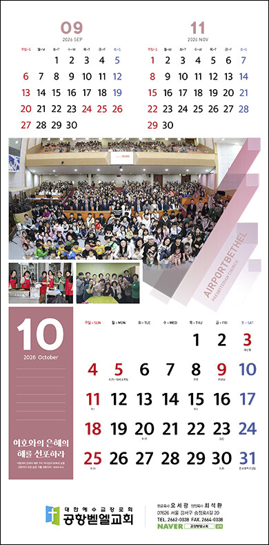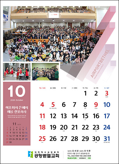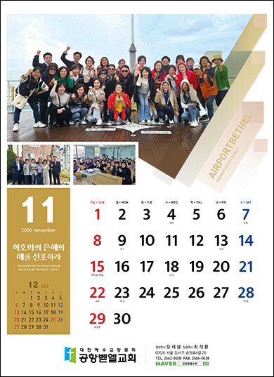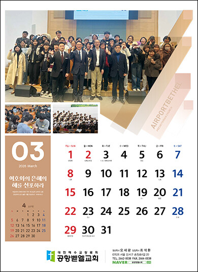 • 본 캘린더에는 기념일, 음력, 절기, 교회력이 표기되어 있습니다.