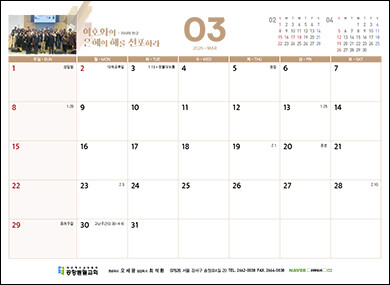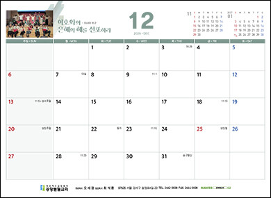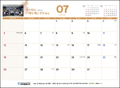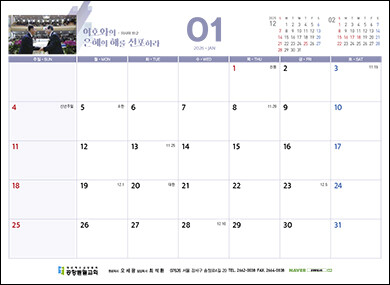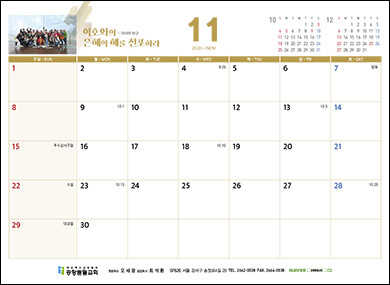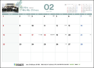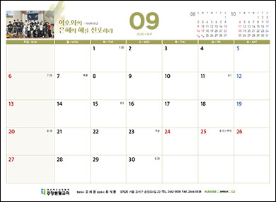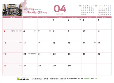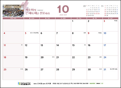 • 본 캘린더에는 기념일, 음력, 절기, 교회력이 표기되어 있습니다.