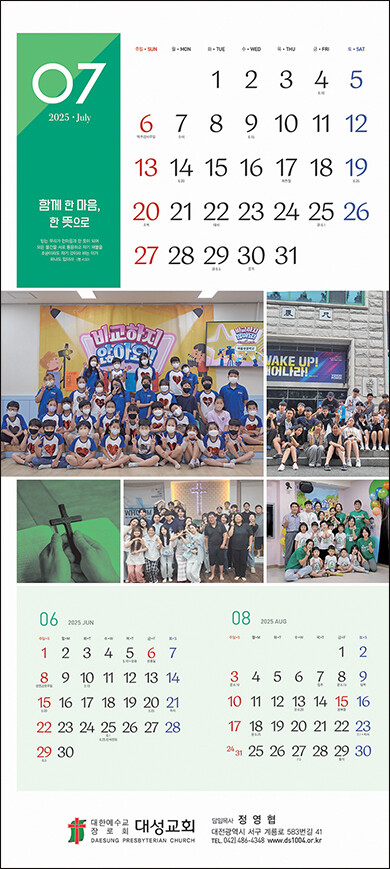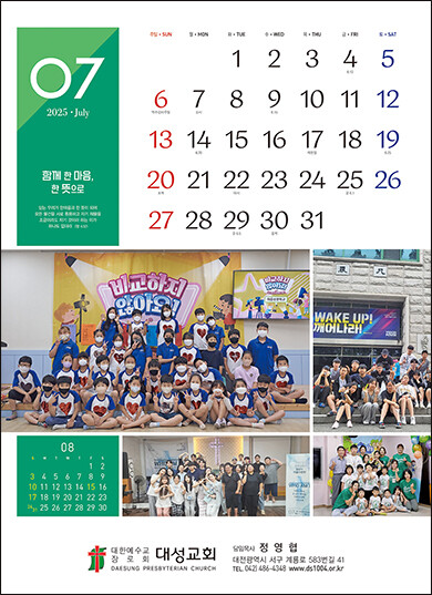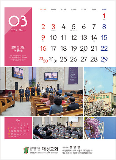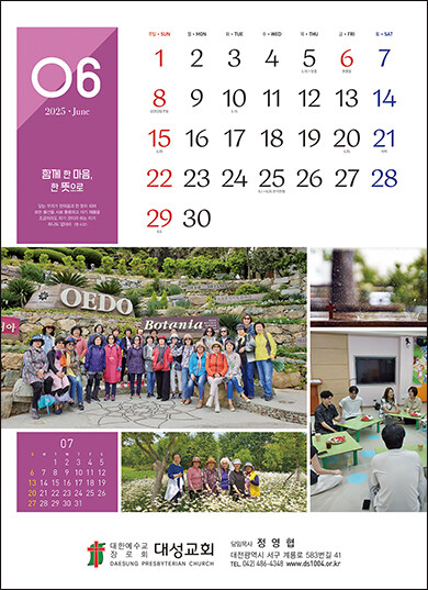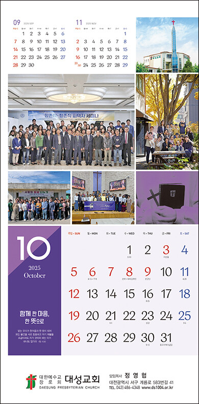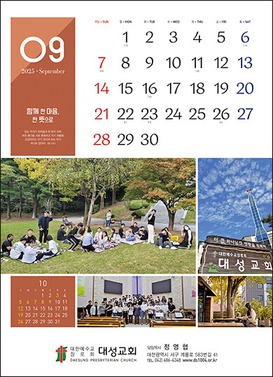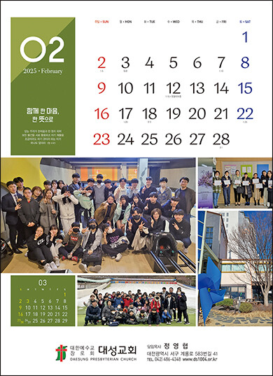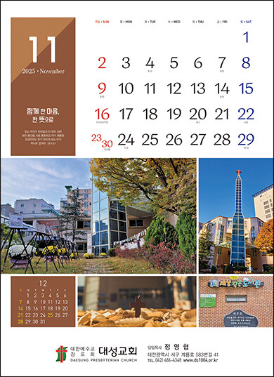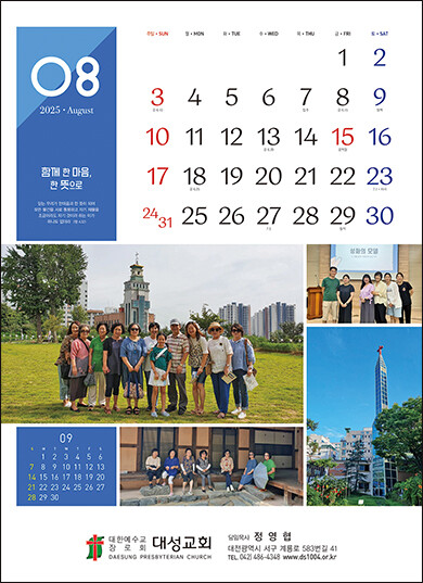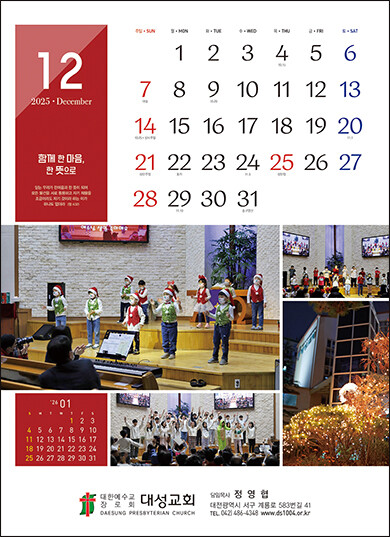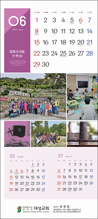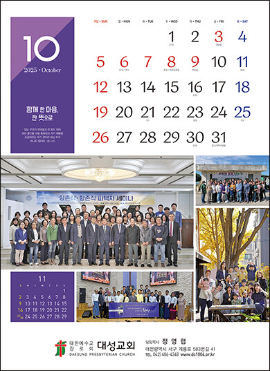 • 본 캘린더에는 기념일, 음력, 절기, 교회력이 표기되어 있습니다.
