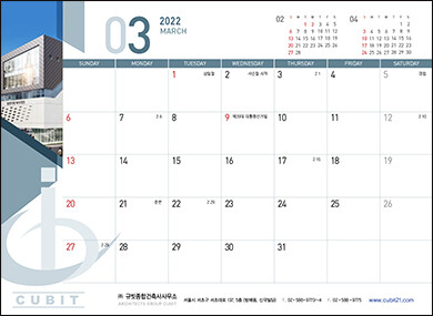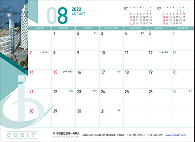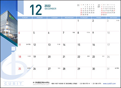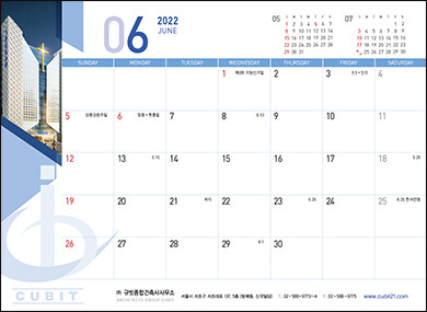 • 본 캘린더에는 기념일, 음력, 절기, 교회력이 표기되어 있습니다.