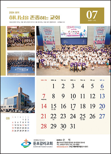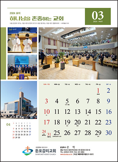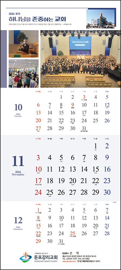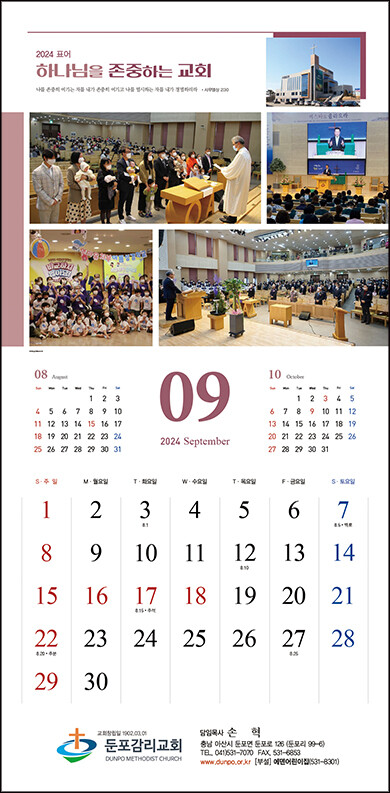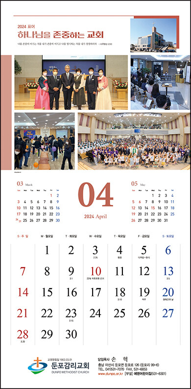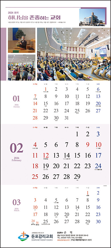 • 본 캘린더에는 기념일, 음력, 절기, 교회력이 표기되어 있습니다.