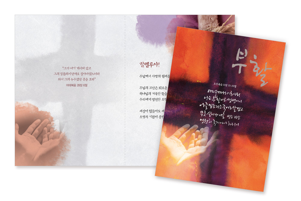보통 교정을 컴퓨터 모니터나, 칼라 프린터로 출력해서 보시는 경우 모니터(빛의 색 RGB)와 인쇄물(잉크색 CMYK)에는 약간의 차이가 있습니다. 각 교회에서 사용되는 칼라 프린트도 옵셋 인쇄와는 인쇄 방식이 조금 달라 색상의 차이가 있습니다. 특히 종이의 재질(모조지, 아트지, 고급용지)에 의한 색의 차이도 발생할 수 있습니다.