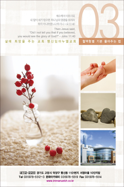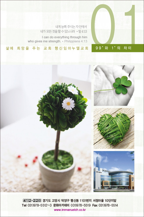 보통 교정을 컴퓨터 모니터나, 칼라 프린터로 출력해서 보시는 경우 모니터(빛의 색 RGB)와 인쇄물(잉크색 CMYK)에는 약간의 차이가 있습니다. 각 교회에서 사용되는 칼라 프린트도 옵셋 인쇄와는 인쇄 방식이 조금 달라 색상의 차이가 있습니다. 특히 종이의 재질(모조지, 아트지, 고급용지)에 의한 색의 차이도 발생할 수 있습니다.