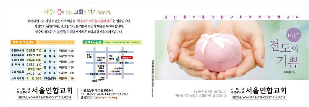 우리교회만의, 우리목사님만의 특화된 내용으로 전도 하고자 하실 경우 사용되는 전도지입니다. 지역적으로 전달해야할 복음내용이 다를경우, 기존 전도지로는 복음전달이 부족할 경우 사용합니다.