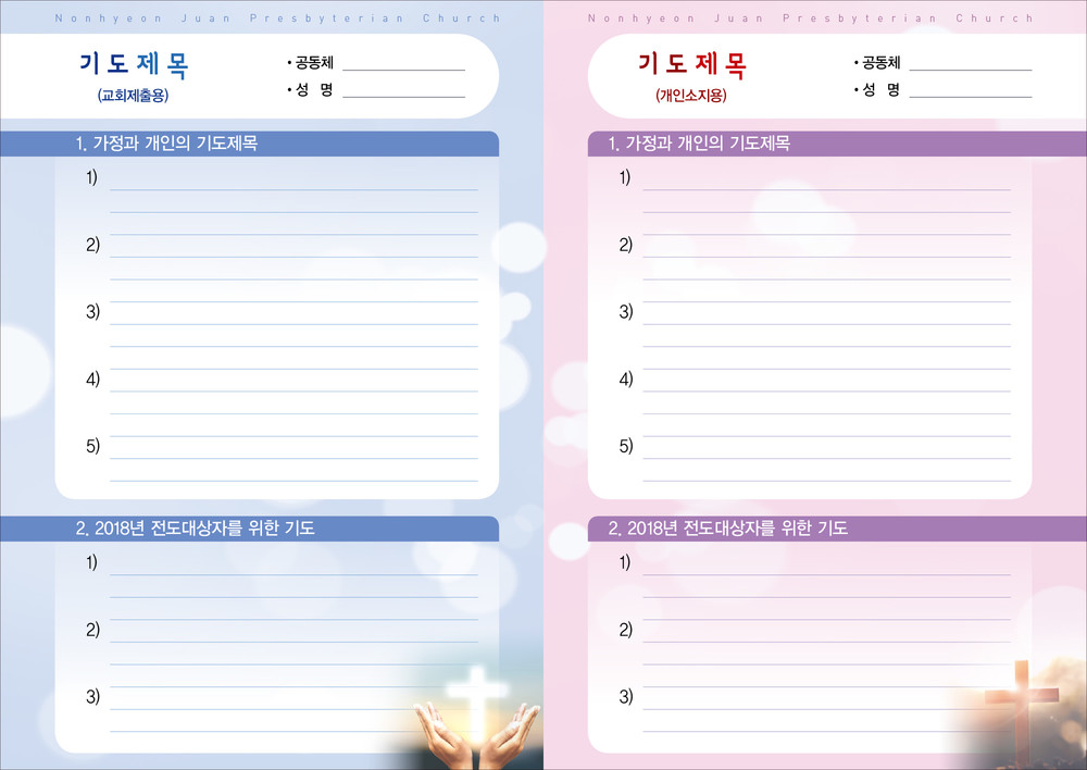 보통 교정을 컴퓨터 모니터나, 칼라 프린터로 출력해서 보시는 경우 모니터(빛의 색 RGB)와 인쇄물(잉크색 CMYK)에는 약간의 차이가 있습니다. 각 교회에서 사용되는 칼라 프린트도 옵셋 인쇄와는 인쇄 방식이 조금 달라 색상의 차이가 있습니다. 특히 종이의 재질(모조지, 아트지, 고급용지)에 의한 색의 차이도 발생할 수 있습니다.