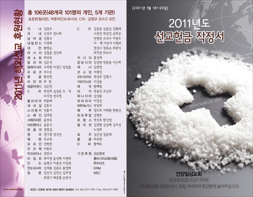 보통 교정을 컴퓨터 모니터나, 칼라 프린터로 출력해서 보시는 경우 모니터(빛의 색 RGB)와 인쇄물(잉크색 CMYK)에는 약간의 차이가 있습니다. 각 교회에서 사용되는 칼라 프린트도 옵셋 인쇄와는 인쇄 방식이 조금 달라 색상의 차이가 있습니다. 특히 종이의 재질(모조지, 아트지, 고급용지)에 의한 색의 차이도 발생할 수 있습니다.