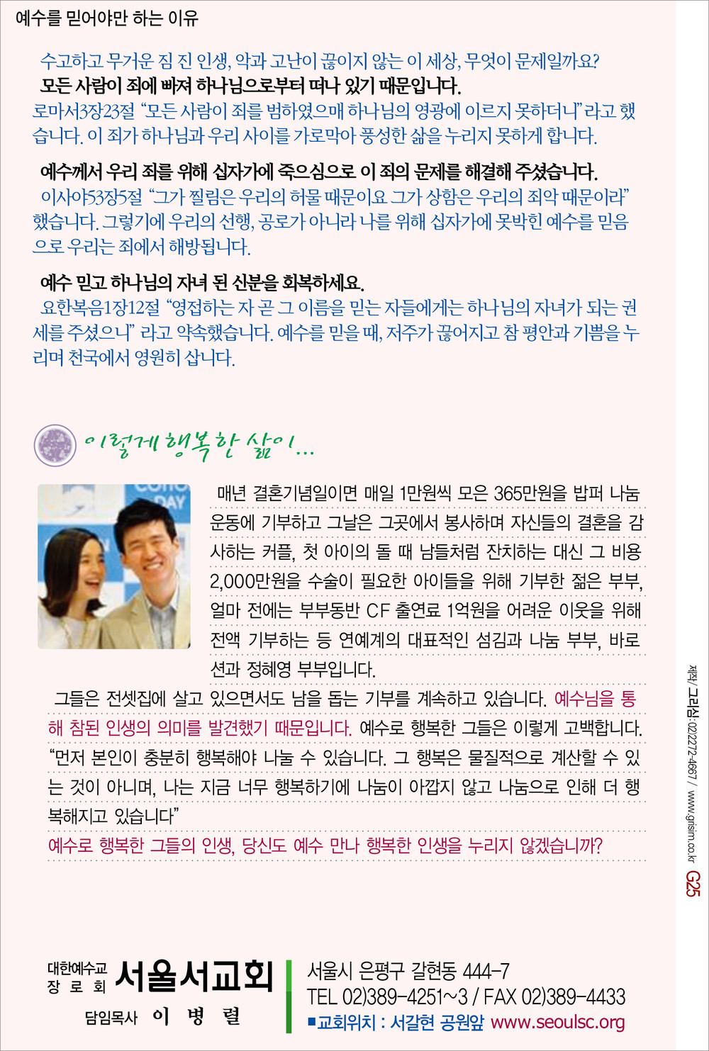 보통 교정을 컴퓨터 모니터나, 칼라 프린터로 출력해서 보시는 경우 모니터(빛의 색 RGB)와 인쇄물(잉크색 CMYK)에는 약간의 차이가 있습니다. 각 교회에서 사용되는 칼라 프린트도 옵셋 인쇄와는 인쇄 방식이 조금 달라 색상의 차이가 있습니다. 특히 종이의 재질(모조지, 아트지, 고급용지)에 의한 색의 차이도 발생할 수 있습니다.