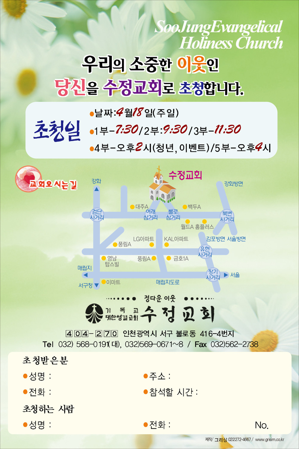 저희 그리심에서 디자인에 더 많은 신경을 쓰다보면 오·탈자를 미처 확인 못할 때가 있습니다. 특히 내용을 전화로 불러주시거나 부득이하게 텍스트를 저희가 타이핑했을 경우 더욱 철저하게 교정을 봐주셔야 합니다.