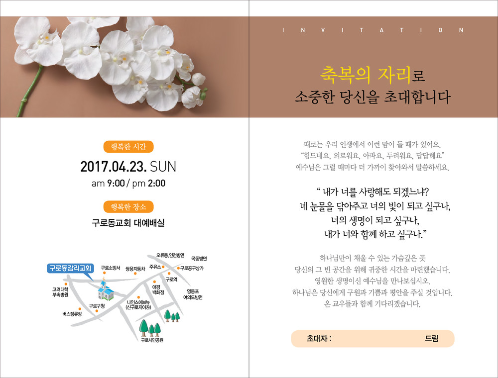 저희 그리심에서 디자인에 더 많은 신경을 쓰다보면 오·탈자를 미처 확인 못할 때가 있습니다. 특히 내용을 전화로 불러주시거나 부득이하게 텍스트를 저희가 타이핑했을 경우 더욱 철저하게 교정을 봐주셔야 합니다.