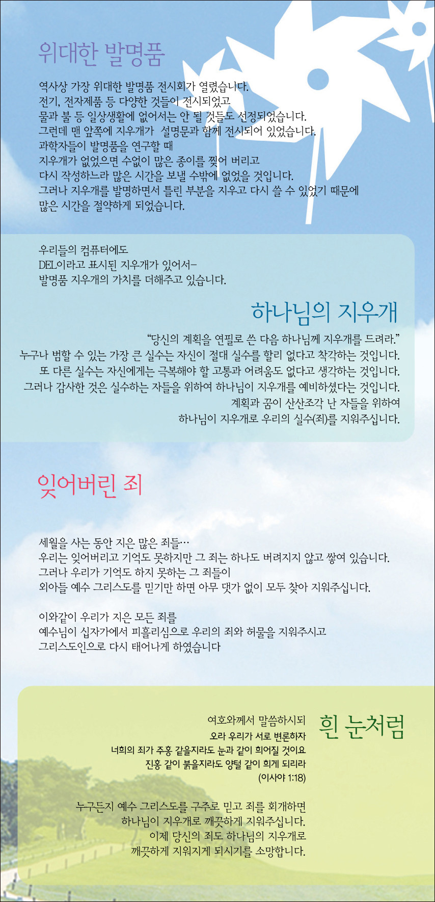 저희 그리심에서 디자인에 더 많은 신경을 쓰다보면 오·탈자를 미처 확인 못할 때가 있습니다. 특히 내용을 전화로 불러주시거나 부득이하게 텍스트를 저희가 타이핑했을 경우 더욱 철저하게 교정을 봐주셔야 합니다.