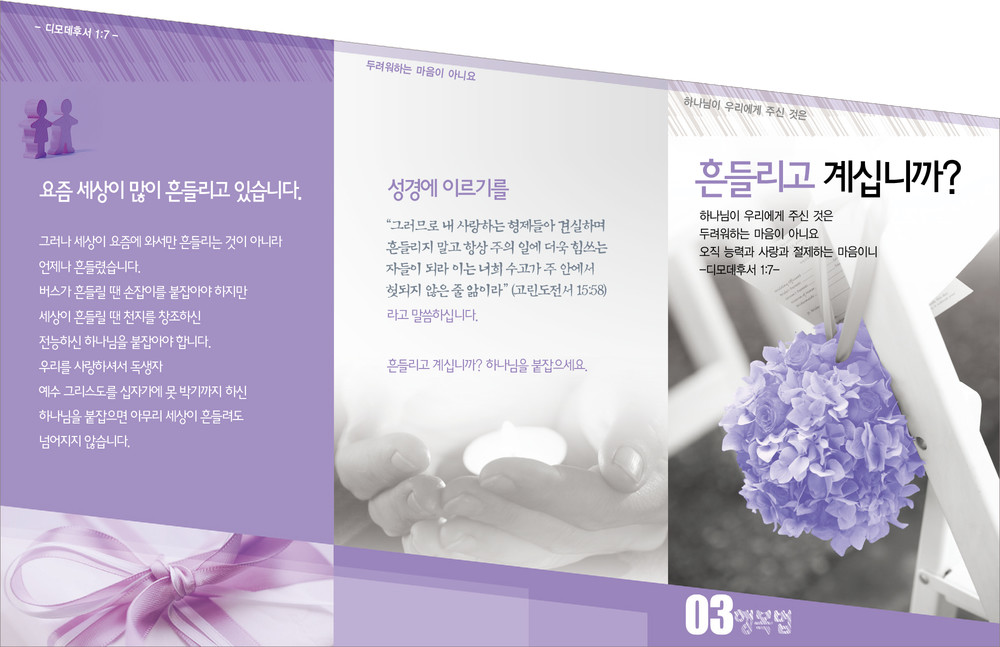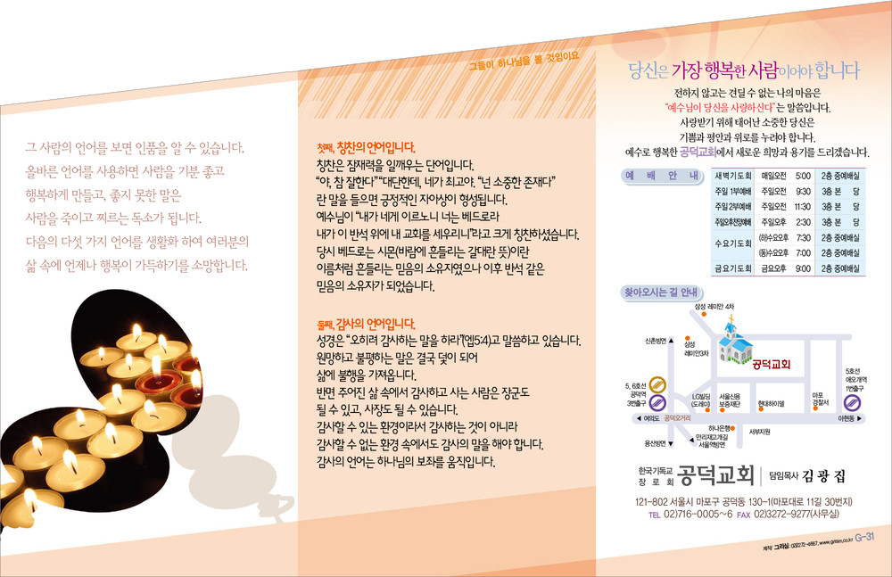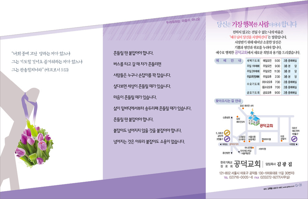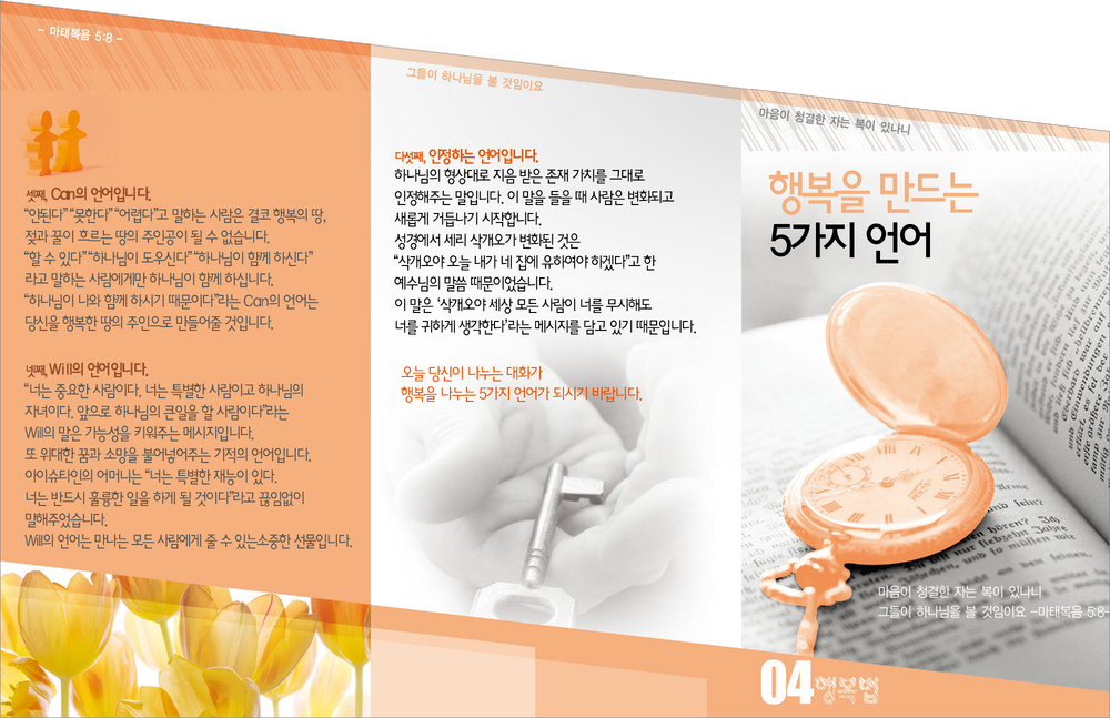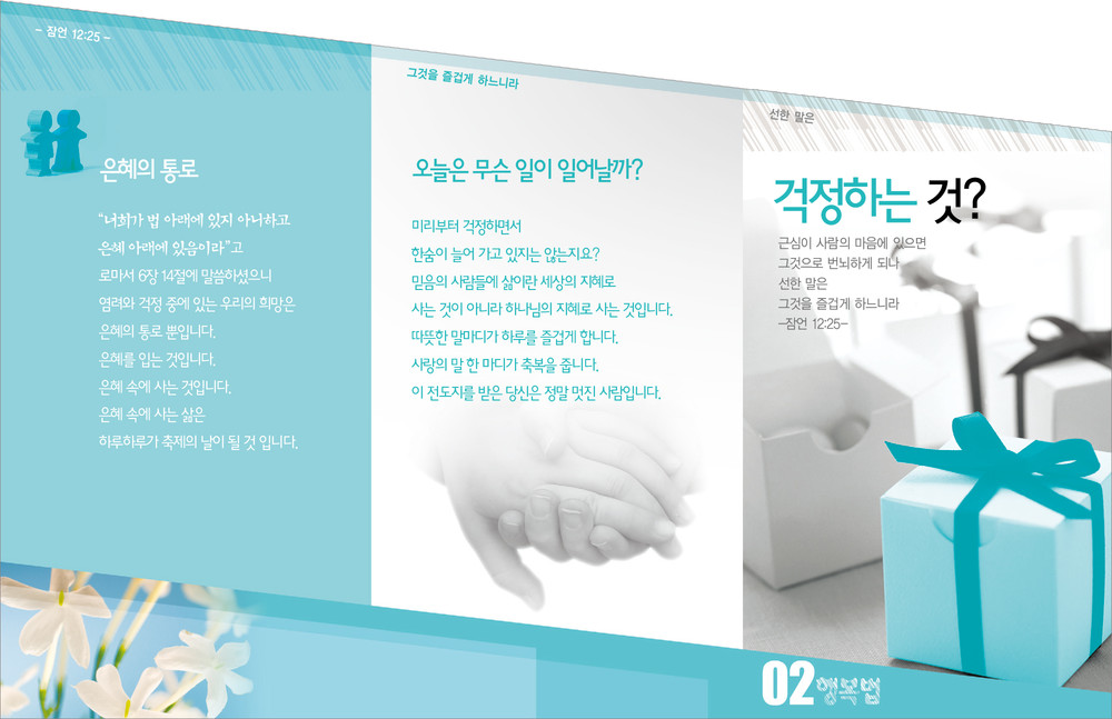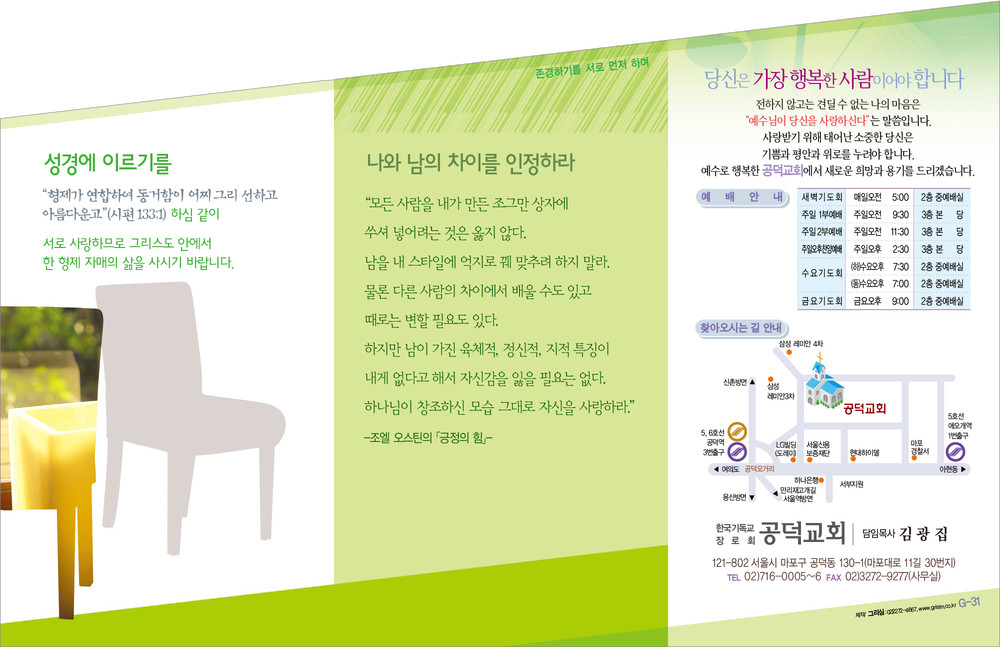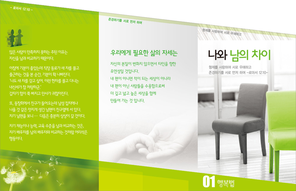 보통 교정을 컴퓨터 모니터나, 칼라 프린터로 출력해서 보시는 경우 모니터(빛의 색 RGB)와 인쇄물(잉크색 CMYK)에는 약간의 차이가 있습니다. 각 교회에서 사용되는 칼라 프린트도 옵셋 인쇄와는 인쇄 방식이 조금 달라 색상의 차이가 있습니다. 특히 종이의 재질(모조지, 아트지, 고급용지)에 의한 색의 차이도 발생할 수 있습니다.
