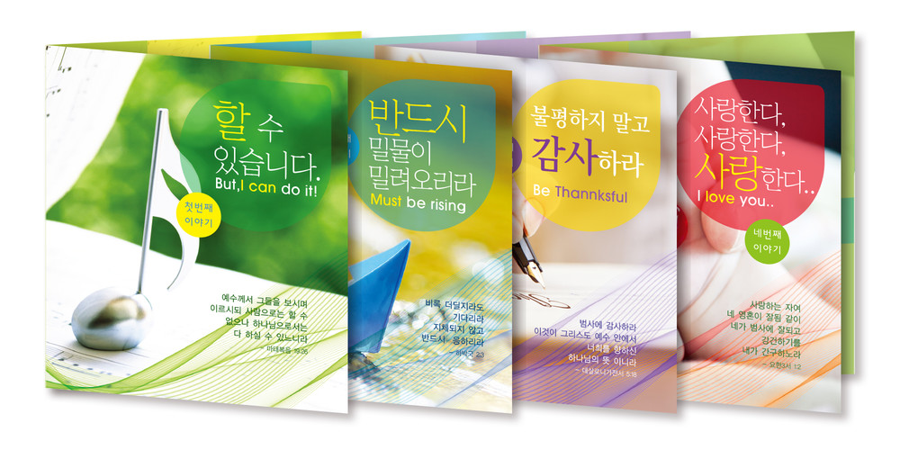 보통 교정을 컴퓨터 모니터나, 칼라 프린터로 출력해서 보시는 경우 모니터(빛의 색 RGB)와 인쇄물(잉크색 CMYK)에는 약간의 차이가 있습니다. 각 교회에서 사용되는 칼라 프린트도 옵셋 인쇄와는 인쇄 방식이 조금 달라 색상의 차이가 있습니다. 특히 종이의 재질(모조지, 아트지, 고급용지)에 의한 색의 차이도 발생할 수 있습니다.