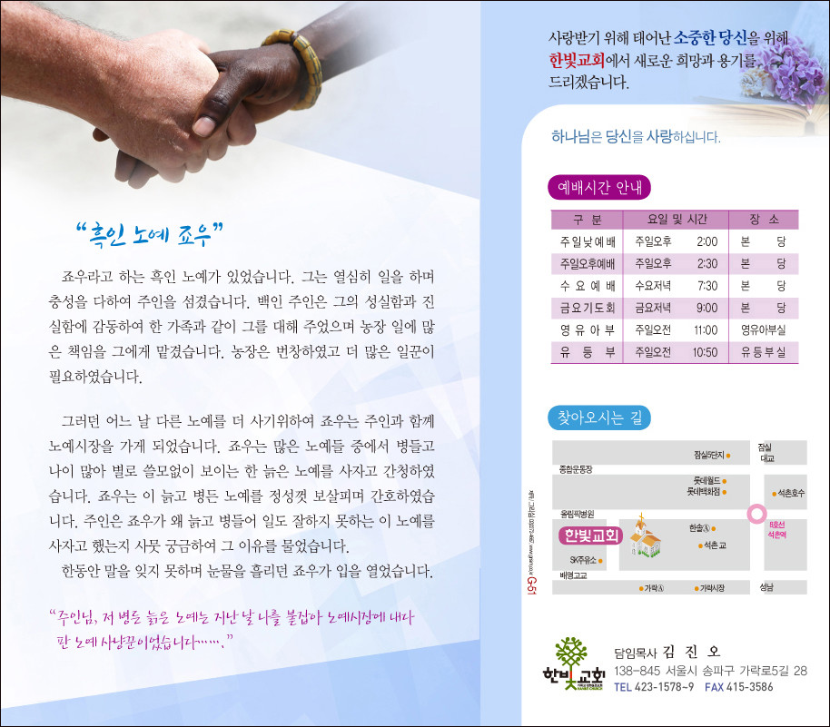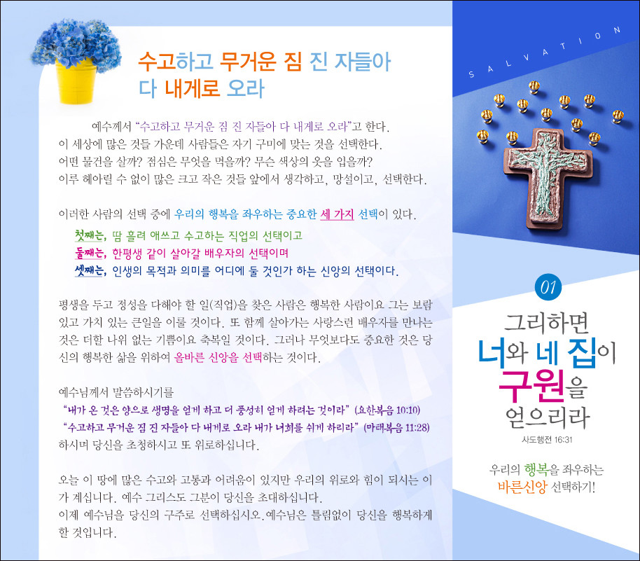 보통 교정을 컴퓨터 모니터나, 칼라 프린터로 출력해서 보시는 경우 모니터(빛의 색 RGB)와 인쇄물(잉크색 CMYK)에는 약간의 차이가 있습니다. 각 교회에서 사용되는 칼라 프린트도 옵셋 인쇄와는 인쇄 방식이 조금 달라 색상의 차이가 있습니다. 특히 종이의 재질(모조지, 아트지, 고급용지)에 의한 색의 차이도 발생할 수 있습니다.