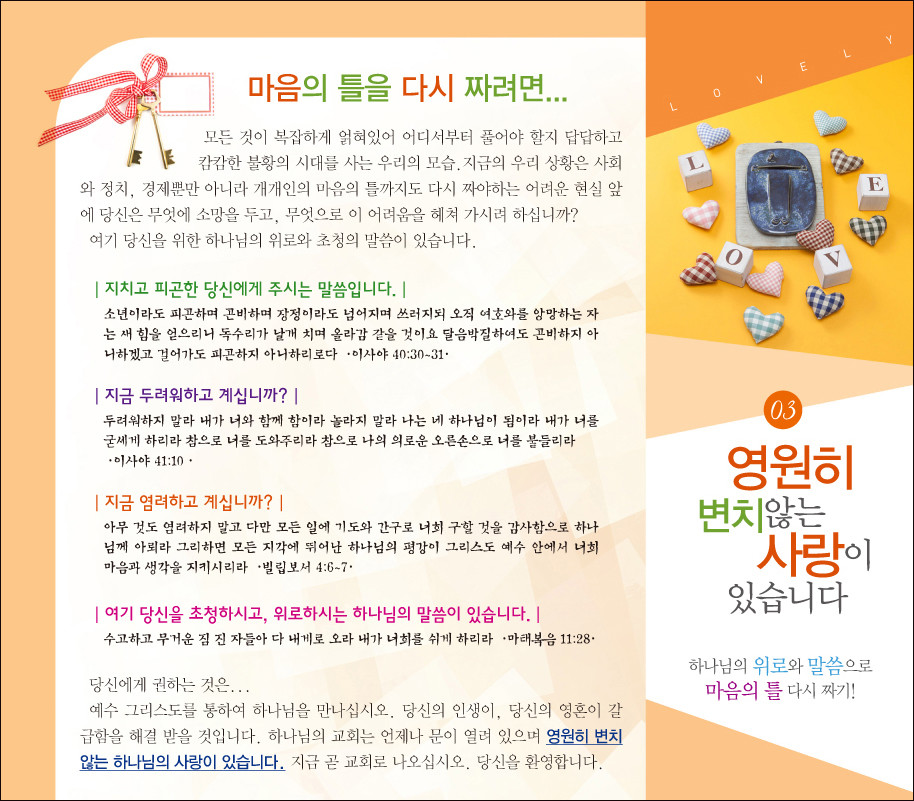 저희 그리심에서 디자인에 더 많은 신경을 쓰다보면 오·탈자를 미처 확인 못할 때가 있습니다. 특히 내용을 전화로 불러주시거나 부득이하게 텍스트를 저희가 타이핑했을 경우 더욱 철저하게 교정을 봐주셔야 합니다.