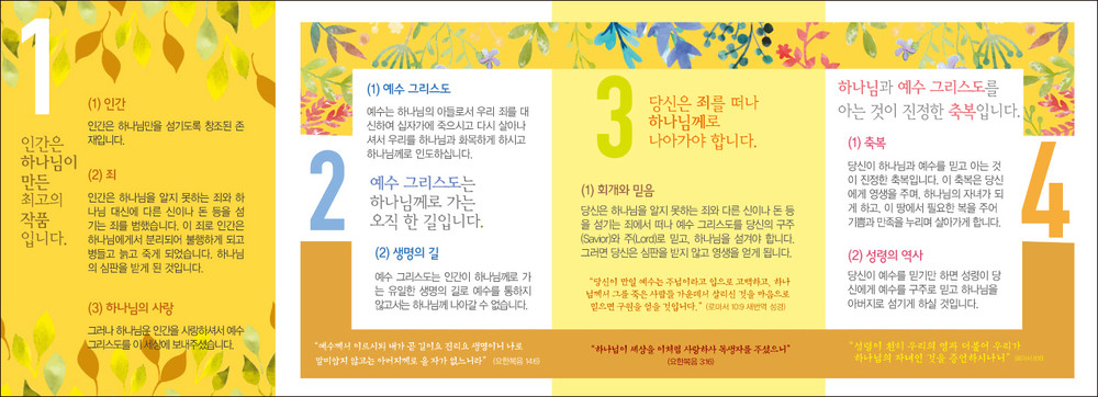 보통 교정을 컴퓨터 모니터나, 칼라 프린터로 출력해서 보시는 경우 모니터(빛의 색 RGB)와 인쇄물(잉크색 CMYK)에는 약간의 차이가 있습니다. 각 교회에서 사용되는 칼라 프린트도 옵셋 인쇄와는 인쇄 방식이 조금 달라 색상의 차이가 있습니다. 특히 종이의 재질(모조지, 아트지, 고급용지)에 의한 색의 차이도 발생할 수 있습니다.