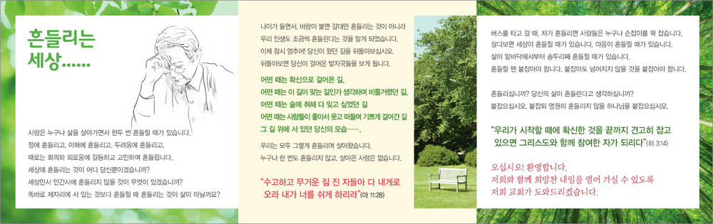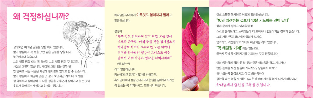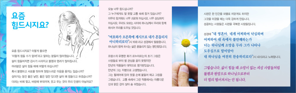 보통 교정을 컴퓨터 모니터나, 칼라 프린터로 출력해서 보시는 경우 모니터(빛의 색 RGB)와 인쇄물(잉크색 CMYK)에는 약간의 차이가 있습니다. 각 교회에서 사용되는 칼라 프린트도 옵셋 인쇄와는 인쇄 방식이 조금 달라 색상의 차이가 있습니다. 특히 종이의 재질(모조지, 아트지, 고급용지)에 의한 색의 차이도 발생할 수 있습니다.