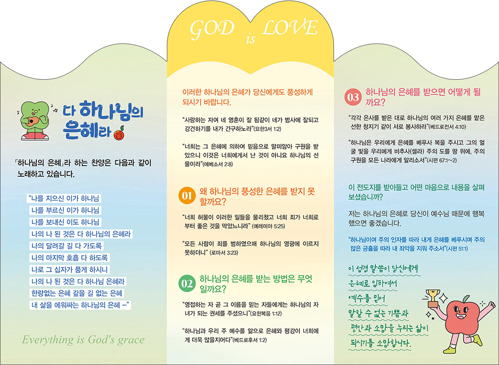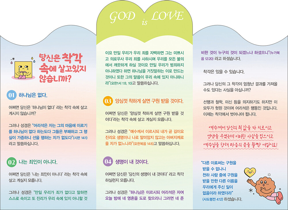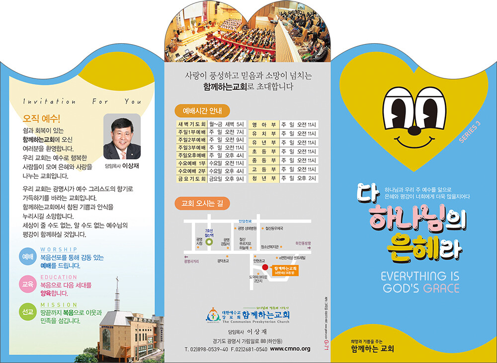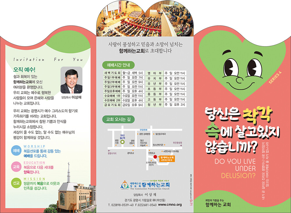 보통 교정을 컴퓨터 모니터나, 칼라 프린터로 출력해서 보시는 경우 모니터(빛의 색 RGB)와 인쇄물(잉크색 CMYK)에는 약간의 차이가 있습니다. 각 교회에서 사용되는 칼라 프린트도 옵셋 인쇄와는 인쇄 방식이 조금 달라 색상의 차이가 있습니다. 특히 종이의 재질(모조지, 아트지, 고급용지)에 의한 색의 차이도 발생할 수 있습니다.