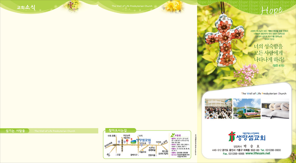 모든 디자인이 완료된 후 현재 교회가 사용중인 한글파일을 보내주시면, 새로운 주보에 맞추어 인쇄가 가능하도록 한글파일을 제작해드리고 있습니다. (한글작업 요청시 약 1-3일 정도의 시간이 소요되오니 참고해 주시기 바랍니다.)